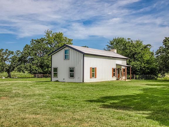 This stunning property is surrounded by Post Oak Trees. The home was completed in 2024. There is a vaulted ceiling in the living room and kitchen areas. The stone on the fireplace goes to the vaulted ceiling point. The primary bedroom is downstairs and there are two additional bedrooms upstairs. The laundry room connects through to the primary bathroom. One upstairs bedroom is used as a playroom and the other a bedroom. The is a back porch perfect for cooking and relaxing. There is an older barn that has living quarters in it. It could be finished into a guest home. There is a carport that is connected to it. There is a set of cattle pens. There is a new horse shed with a tack room in it. This property has it all! The fencing is all net wire fencing which is perfect for cattle, horses or dogs!