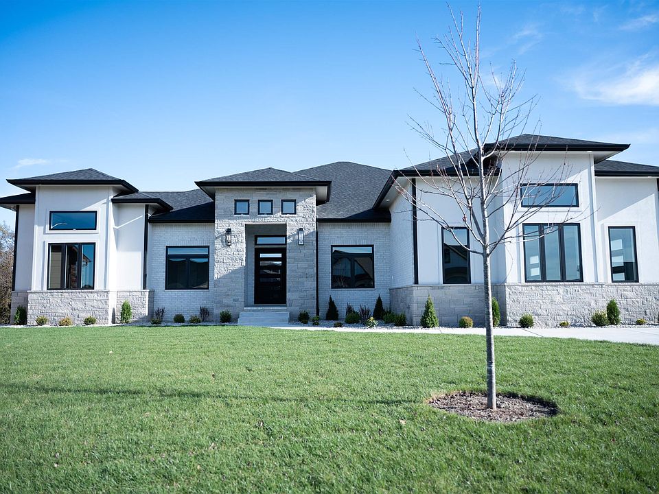 Introducing an extraordinary 7,600 sq ft luxury estate in the coveted Sierra Hills community—perfectly positioned along a serene private tree line and pond. This brand-new, 7-bedroom, 6-bath masterpiece offers unrivaled craftsmanship, exquisite finishes, and thoughtfully curated spaces for both lavish living and effortless entertaining. Step inside to soaring ceilings, expansive windows, and a design that blends sophistication with comfort. The gourmet kitchen showcases Schrock cabinetry, double ovens, custom pull-outs, and a gas option—designed for the chef who wants it all. The open layout flows seamlessly into spacious living and dining areas, with access to the large covered deck. The luxurious primary suite is a retreat of its own—featuring a cozy fireplace, a spa-inspired bath with a massive walk-in shower, soaking tub, built-in storage, and an impressive walk-in closet. A private entrance to the deck extends the suite’s tranquility. Convenience is elevated with two laundry rooms, including one directly inside the primary bathroom. A statement den features a full Brazilian exotic tile feature wall, built-in cabinetry, an exotic granite countertop, custom LED lighting, and a sleek fireplace—ideal for work, lounge, or luxury library space. The 3,800 sq ft walkout basement is an entertainer’s dream. Enjoy 10’ ceilings, LVP wood flooring or tile in all main areas and baths, and a designated game room/theatre/rec space perfect for hosting. Additional highlights include: storm shelter, Wet bar with exotic granite, full-size refrigerator space, and dishwasher. Non-conforming flex room (ideal gym/exercise room) with walk-in closet, sitting area between guest wing and flex room and a massive storage room for crafts, seasonal items, or workspace. The oversized garage is fully insulated and painted, featuring a pre-installed setup for a split heater, ready to be climate-controlled for year-round use. With an exceptional private tree line this property offers a rare combination of privacy and prestige. Every inch of this home is designed with scale, beauty, and quality in mind—creating a residence that is as functional as it is unforgettable. Additional photos coming soon.