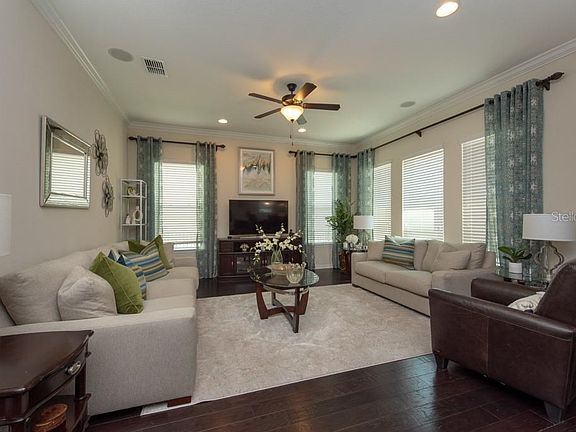 IMMACULATE 4 bed/2.5 bath/2 cg +BONUS LOFT home nestled in the HEART OF Lithia and shows like a MODEL! PICTURESQUE 2 story in HIGHLY SOUGHT AFTER NEIGHBORHOOD of Fishhawk Ranch West! Nestled on a LARGE LOT with exquisite CURB APPEAL featuring a FRONT PORCH and pavers setting the tone for this WELL CARED FOR AND UPGRADED HOME. Features include a SPACIOUS OPEN FLOOR PLAN, CROWN molding, and soaring HIGH ceilings. A beautiful formal living room and dining room boasting PANEL WALLS and coffered ceiling, and CUSTOM ENGINEERED HARDWOOD FLOORS adds warmth and charm to this ARCHITECTURAL DETAILED BEAUTY. The spacious CHEF'S KITCHEN boasts lovely WOOD cabinets, STAINLESS STEEL APPLIANCES, LARGE ISLAND w/breakfast bar, plenty of QUARTZ counter space, and opens to the cozy family room. Great for entertaining family and friends! Large windows allow an abundance of natural light to flow throughout the home. The luxurious MASTER suite is located on the FIRST FLOOR and boasts CROWN molding, carpet, HIS AND HER CLOSETS, and en suite bath with DUAL vanity, WALK IN shower and PRIVATE commode room. A generous OFFICE with FRENCH DOORS, half bath and laundry room complete the first level. CUSTOM WOOD RAILS on the staircase lead up to 3 additional carpeted bedrooms, offering ample living space and plenty of closet areas. The loft/bonus room is perfect for a game room or additional entertaining space! PRIDE IN OWNERSHIP is apparent in this elegant home! Bonuses include speaker system in the living room and custom solid wood curtain rods. Surrounded by gorgeous FENCED YARD and beautiful mature landscaping, this home features fantastic OUTDOOR LIVING SPACE! Enjoy the FL weather on the SCREENED LANAI and patio with plenty of space to garden! The garage offers shelving for EXTRA STORAGE. The AMENITIES at Fishhawk West, include dog parks, a zero entry family pool with splash pad, heated fitness pool, playgrounds, basketball, The Lakehouse overlooking Lake Hutto with a fitness center, screened recreation house to play pool, ping pong, fooseball, fire pits, grocery store, and a club house with fireplace and kitchen. If you're a nature lover, you'll enjoy 25 miles of trails both paved & unpaved. Within a 5 MINUTE WALK there is a TOP RATED ELEMENTARY AND MIDDLE SCHOOL. Family friendly neighborhood, close to shopping, The Brandon Town Center, restaurants, local schools, and a quick commute to DOWNTOWN TAMPA! This is it!