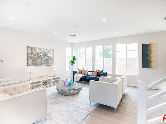 San Fernando Valley's Best and the crowned jewel of Monroe at Hazeltine by etco Homes, The Leadwell Residence brings contemporary architecture and traditional charm to Van Nuys. An expansive 4 bedroom plus loft and 3 bath single-family home, this one is a showstopper of 2,600 sq. ft. of living space and has a separate driveway leading to its 2-car garage at the end of a private cul-de-sac, located on Leadwell Street. A dramatic lower level living space invites you inside from the front porch,open concept floorplan perfect for family gatherings or entertaining. Light sand luxury vinyl flooring throughout the home and tile in all baths and laundry room. Caesarstone countertops in all baths, 12x 24 tiles and shower shelf, at the Master bath. Moen align chrome plumbing fixtures ,modern cabinetry with brushed nickel pulls, stainless steel Whirlpool appliance package with French door refrigerator, water dispenser, 4-burner gas range with drawer broiler. Furniture not included.