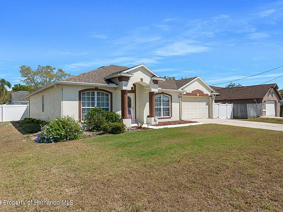 This Beautiful Mercedes Built home Features Three Bedrooms, Two Baths and a Two Car Garage with 1808 sq. ft. of Living Space. Located in a Lovely Neighborhood with No HOA Or Deed Restrictions and Minutes to the Suncoast Pkwy. A Brand New 30 Year Three Dimensional Shingle Roof was installed in Oct, 2022, Brand New A/C was installed in 2019, and the Interior of the Home Is Painted in Gorgeous Neutral Tones. The Landscaping is Beautiful and the Home has Been Lovingly and Meticulously Cared for. This Gorgeous Home is Spacious with a Formal Living Room and Formal  Dining Room. There is a Large Family Room Open to the Spacious Kitchen. The Chef of the Family will Love this Amazing Kitchen !! There are Beautiful White Cabinets, Large Pantry, Comfortable Dining Area and Breakfast Bar.  There are Sliding Glass Doors from the Family Room that Lead out to the Relaxing Screened In Porch with an Open Grilling Patio and Amazing Fenced In Back Yard. The Master Bedroom is a Relaxing Space with a Large Walk-In Closet. The Master Bathroom has a Tub/Shower Combo and Dual Sinks.  This Home Features a Wonderful Split Floor Plan. The Two Guest Bedrooms are Spacious and Both Bedrooms have Large Closets. The Guest Bathroom Has a Large Vanity and a Wonderful Step-Shower. There is a Convenient Inside Laundry Room and the Washer and Dryer Do Stay with the Home. There is a Large Storage Shed and the Exterior of the Home has Gutters all around. You Will Love the Outdoor Space this Home Offers. The Back Yard is Completely Fenced In with White Vinyl Privacy Fencing, its like a Park. Whether you are Working on Your Tan, Playing Kick Ball or Soccer with the Kids, or Simply Enjoying the Beautiful Florida Weather... The Fun you will Have and Memories You Will Make Here with Your Family are Truly Priceless !! This Home is Conveniently Located Close the Suncoast Parkway, Shopping, Dining, Schools, Doctors Offices and Hospitals. Better Hurry this Home is Priced to Sell Quickly for Only $284,900 !!