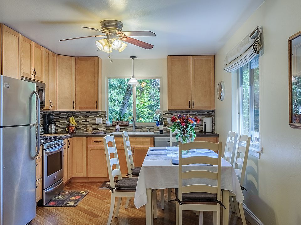 Fully furnished bright and sunny upstairs apartment on five lovely beautiful wooded acres. Close to a beautiful lake and great trails for hiking and bike riding. The property is fully fence and gated. This property will be available to rent or lease after 10-3-25. I am very open to a long term tenant. Four wheel drive is not necessary but is recommended. Two dogs and two horses live on the property.