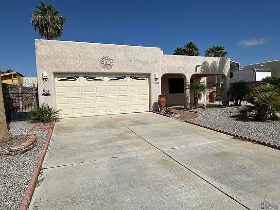 Beautiful 2-bedroom, 2-bath Santa Fe-style home located in the desirable Foothills homes-only section. Features a two-car garage, RV access and parking, and easy-care desert landscaping with fruit trees. Enjoy covered front and back patios with stunning mountain views, plus a handy storage shed. Full of Southwest flair, this cozy retreat offers comfort, style, and the relaxed Yuma lifestyle you’ve been looking for.