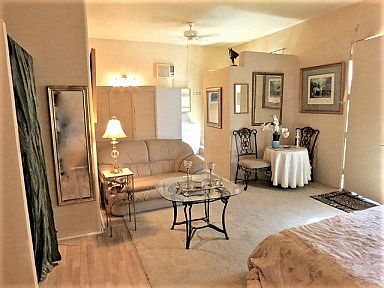 EXTRA, EXTRA LARGE FURNISHED STUDIO. PRIVATE ENTRANCE, located on 2.5 acres in beautiful North Scottsdale (85262) small kitchen, equiped, full shower, small bathroom corner with shelves for your cosmetics and towels etc.. Unit is very private and quiet . Here, you will have total privacy and enjoy great views all around. dogs, cats ok with an extra refundable deposit. Unit has been rented for several years , off and on. I only accept respecftul tenants who are employed and responsible. Prospective tenants must disclose proof of employment, income, social security # etc...