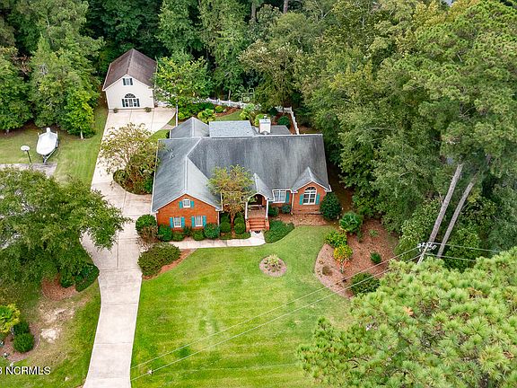 Welcome to the sought after Bellefern community in the Town of Trent Woods, NC. This beautiful 4 bedroom, 3 full bathroom and 1 half-bathroom home with FROG resides on 2.2 acres of private land and includes a 768 SF guest house with additional storage space on second story (not heated/cooled). ****Buyer will receive $5,000 carpet allowance at closing. First floor highlights include crown molding throughout, wood floors, private office with built-in cabinets & wet bar, formal dining, living room w/high ceilings, fireplace & nat'l gas logs. Cozy Carolina room off living room. Kitchen has tile floor, granite counter tops, stone backsplash, eat-in area & built-in desk space. Separate laundry room. Master bedroom is off kitchen & has walk-in closet, bathroom with double vanities, walk-in shower, jetted tub, tile floor. 2 bedrooms & 1 full bath downstairs. Upstairs features 1 bedroom, full bathroom & massive finished room over garage. Additional highlights include attached 2 car garage, whole house natural gas generator, Rinnai nat'l gas hot water heater, fenced-in backyard. Backyard boasts a luxurious custom stone entertaining area with built-in grill area and two stone patios that overlooks the fenced-in backyard and natural wooded setting. The 768 SF guest house renovated in 2014/2015 by McClay Custom Homes & offers quality upgrades such as crown molding, LVT floor, living room, kitchen, bedroom, bathroom & private fenced-in yard area. Upstairs offers large walk-in storage (not heated/cooled). Trent Woods is within 10 mins of Historic Downtown New Bern, in close proximity to Hwy 70 & 45 min drive from Crystal Coast Beaches. Neighborhood amenities include sidewalks, Meadows park & lake, Cottle park with pickle ball courts & much more! Be sure to checkout the feature sheet with the long list of highlights.