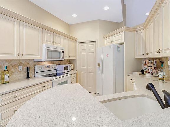 This spacious 2 bedroom plus den villa, with full GOLF MEMBERSHIP and has been beautifully updated! Some of the many updates include new roof 2019, new AC in 2018, exterior paint in 2018 and interior paint in 2016.. The kitchen was updated in 2016 with custom cabinetry, quartz countertops and new appliances. You'll enjoy the Florida weather and the sunny Southern exposure from your extended private lanai with new pavers and screening. Glen Eagle is one of Naples' most reasonably priced golf course communities and is located just minutes to downtown Naples and Naples' award winning white sand beaches! Glen Eagle residents enjoy golf, tennis, putting green, bocce, fitness center, restaurant and an active social calendar. Conveniently located just blocks from grocery stores, pharmacies, banks, shopping and restaurants! Priced to sell and ready to move into!