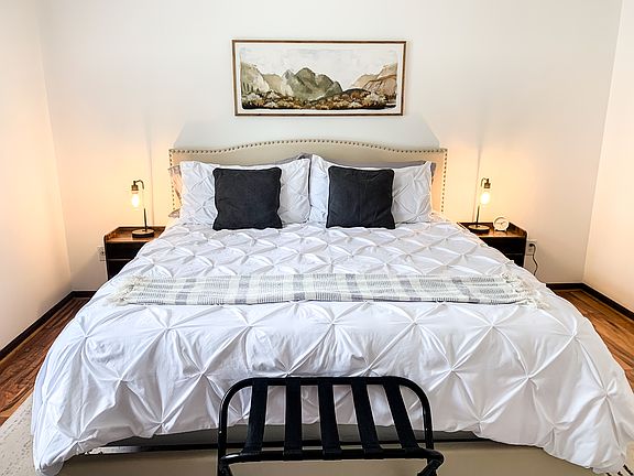 Modern finishesQueen sofa bedSmall backyard deckKing bedQueen bedQuiet neighborhoodOff-street parking