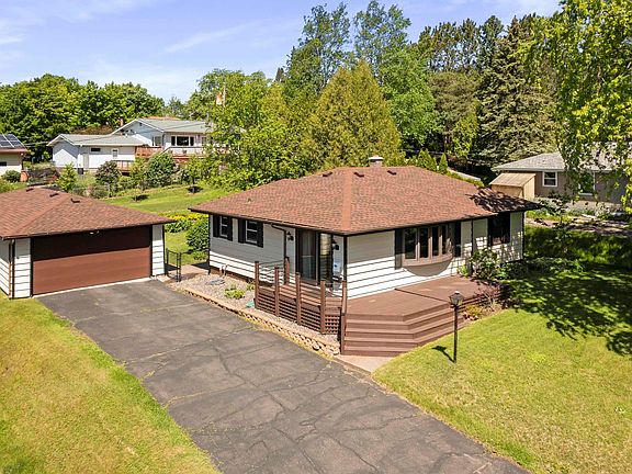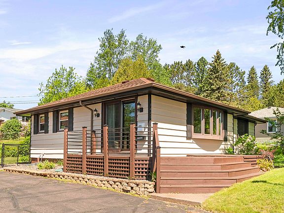 Beautifully updated Ranch/Rambler style home with 3 spacious bedrooms, 2 bathrooms located in the heart of Duluth. This property boasts an insulated/heated 2 stall detached garage with room off the back for a shop or a home gym. Home has a generous sized dining room and has a living room that features a great view of the lake. The kitchen features granite counter tops, a hood over the oven and plenty of space to cook/prep for all gatherings. The lower level of this home features another living room boasting a gas fireplace, bedroom, bathroom, laundry and room for storage. The front deck is welcoming, comforting and has great views of the bay and lake and do not miss the views from the backyard with gorgeous planters and a fenced in yard.