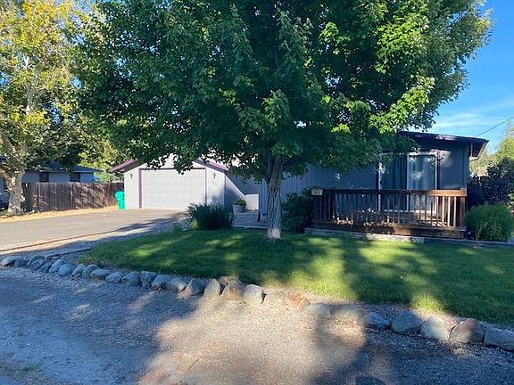 Super cute dollhouse! Ready to move in, great condition. Recently painted exterior. Nice new deck off the back. deck off the front. Nice landscaping in front and side. Featuring 2 bedrooms, 1 bath, vaulted ceiling in living room with gas stove (heats the whole house), window unit air conditioner, ceiling fans throughout, and indoor laundry. Situated on a huge/level .36 acre with flood irrigation. Has an over-sized detached finished garage with 8 foot door and 220 power. Excellent well, tested in 2018 at 16 GPM. City sewer, and District 7 Schools! New roof in 2017.