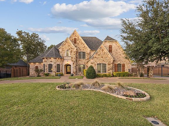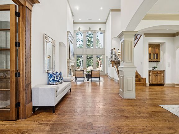 Discover a unique opportunity in the charming Danbury Parks neighborhood with this exquisite custom home. Perfectly positioned just steps away from picturesque trails, parks, dining, shopping, and entertainment options just minutes away. Inside, the home boasts a thoughtfully designed layout featuring soaring ceilings and abundance of natural light. Bright and open living areas are tailored for both comfort and entertaining. At the heart of the home, the living room impresses with a seamless connection to the kitchen, while a wall of windows offers stunning views of the expansive backyard. The dining room shares this open space, effortlessly blending style and function.The spacious study offers stain cabinets, venetian plaster, and custom coffer ceilings. You can't miss the exquisite hand-scraped hardwood floors throughout the home. The gourmet kitchen is a true highlight, features exotic granite countertops that perfectly complement the custom cabinets, whether you're a culinary enthusiast or prefer simple meals, this kitchen is equipped to handle it all. The primary suite serves as a true retreat, with cozy sitting area and fireplace for relaxing in the evenings. Guest suite located on the first floor with new carpet and walk-in closet. Recent updates enhance the home's appeal, including updated landscape, JellyFish lighting allows custom lighting for any holiday, new LED lighting throughout, painting, new carpet, instant hot water at all faucets, professionally installed 6-person storm shelter and more. The backyard is made for entertaining year-round, featuring an auto louvered pergola, patio heaters, and plenty of room to relax. This home is beautifully designed, move-in ready, and oversized lot. New roof Nov 2025, downstairs HVAC replaced Nov 2024, all windows have Huper Optilk window film. Best of all, you don’t have to take on an older pool, you can design and build your own with the latest technology to perfectly fit your vision for this beautiful backyard.