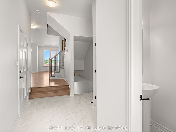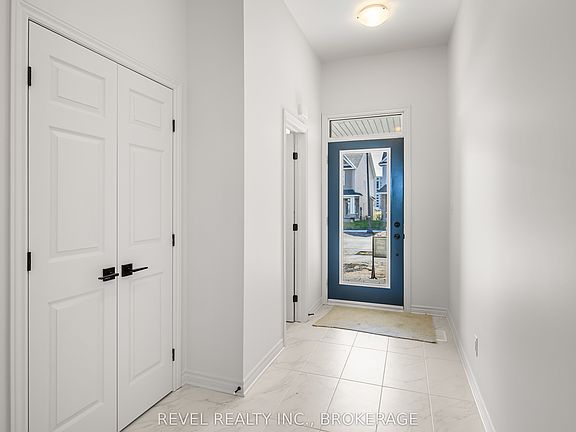 The Abbey model offers 1,855 square feet of finished stylish living in Kingstons West Village community. The main floor showcases maple hardwood, a modern kitchen with quartz counters, white shaker cabinetry, an upgraded sink, and a spacious walk-in pantry. A cozy gas fireplace anchors the living area. Upstairs, the primary suite includes a luxurious 4-piece ensuite with a freestanding tub and a walk-in tile-and-glass shower. The home also features a finished walkout basement with a rough-in for a future bathroom, giving you plenty of extra living space and flexibility. ENERGY STAR certified for efficiency, this home is close to the Rio Can, Cataraqui Centre, new schools, and parks.