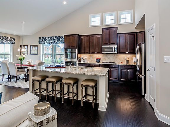 Stunning, incredibly updated, Daventry model home from Heartland, never lived in, was model home, covered porch entry, first floor master as well as guest bedroom, open stunning floor plan, stylish and detailed indoor lighting, outstanding FINISHED WALK UP BASEMENT with full bath and huge study/home office/4th bedroom, gorgeous patio with fire pit, 2 car garage, top notch landscaping and outdoor lighting, sprinkler system, security system installed, basement is just amazing!!!
