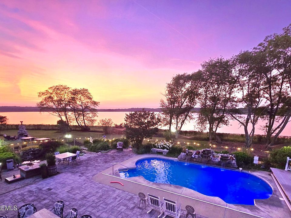 Outside is a heated, salt water pool w/ 3 waterfalls, a separate swim spa, a hot tub, several dining areas and grill areas, outdoor Fireplace on the water, wooded picnic areas, and more! For those looking for privacy, this is it. For those who like to entertain, your search is over. Come experience this peaceful oasis!