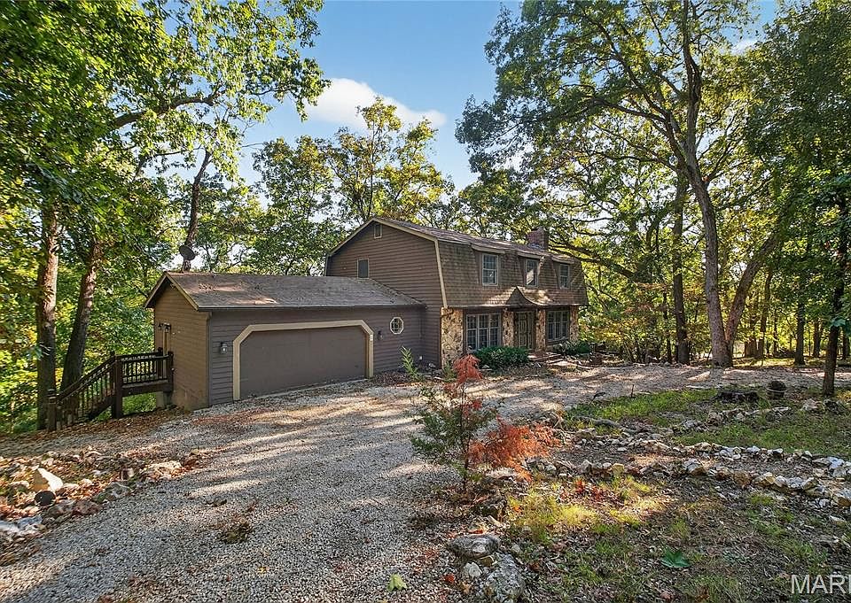 Far from the maddening crowd sits a house at the end of a cul-de-sac awaiting its next incarnation. The renovation possibilities are endless! - perhaps a cabin in the woods, or a luxurious country house, or just a refresh of this comfy homestead. The sense of privacy and beautiful views will inspire you! The house is solid and welcoming - enjoy the cosy brick fireplace on a cold snowy night and the expansive decks in fair weather. Large primary bedroom with ensuite and 3 additional bedrooms complete the 2nd floor. The spacious kitchen will allow you to design the kitchen of your dreams!! The basement is a large, open, and unfinished space with a walkout to the lower deck - adding a significant amount of additional living space once finished. Rockwood schools, oversized 2-car garage, acreage, close to Babler State Park. Make it your own peaceful corner of the world!
