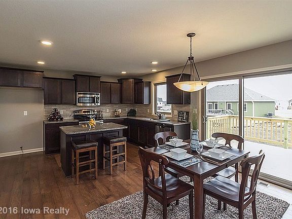 The Lincoln plan features a large eat-in kitchen with granite counters, breakfast bar, custom backsplash, stainless steel appliances. Sliders from the kitchen to the deck overlooks a full sodded backyard. Large great room has gas fireplace with a built-in TV component shelf. Upstairs you will find four generously sized bedrooms, two bath areas, and a conveniently located laundry room. Lighted stairways for ease of movement. Three car attached garage, lower level is stubbed for bath, perfect for future finish! Special financing plan that includes NO origination fee, NO closing costs thru the preferred lender. Greenland Homes is also building in Adel, Altoona, Ankeny, Bondurant, Grimes, Huxley, and Waukee. Temporary Housing Available