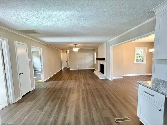 Welcome Home to your NEWLY REMODELED ranch home ideally nestled on a spacious 1.35 ACRE lot in a convenient Greensboro location. Open floor plan features an updated Kitchen w/ ALL NEW cabinets, granite counters and stainless steel appliances. UPDATED Baths with tile. Spacious Living Room with fireplace, formal dining room space, and Den area at the entry that can be a great Home Office or extra living space. The Owner’s Suite includes a huge walk-in closet and upgraded en-suite bathroom. Other NEW UPDATES include new paint, new flooring, NEW ROOF, new vinyl windows, new water heater & much more! Enclosed porch is heated and included in square footage. Outdoor features include a 2-car detached carport, huge storage building great for a workshop or other activity space, brand new back deck great for relaxing on a cool autumn evening, and a 1.35 acre lot w/ deep back yard. Hurry, this home is ready to MOVE RIGHT IN and won’t last long! See Agent Only Remarks