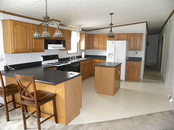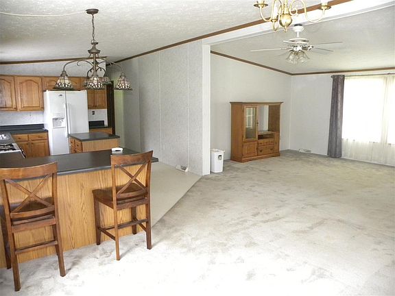 Beautiful well maintained manufactured home sitting on 1.5 acres just off of Hwy 231 North of Spencer. The home has 3 BR and 2 full baths with a formal entry with French doors leading into open concept living area with cathedral ceilings. The kitchen has plenty of nice oak cabinets, a breakfast bar and a separate work island. There is a big covered front porch with a separate entrance to the home through the laundry room which is just off the kitchen and has room for a freezer and pantry area. The rooms are large and the home is in perfect condition. Outside there is a big detached garage/workshop, a new covered carport and a nice storage barn. The property is meticulously landscaped with mature perennials and trees. The land is mostly level with a beautiful lawn and a big garden spot. The home is spotlessly clean and vacant and just waiting on a new owner.