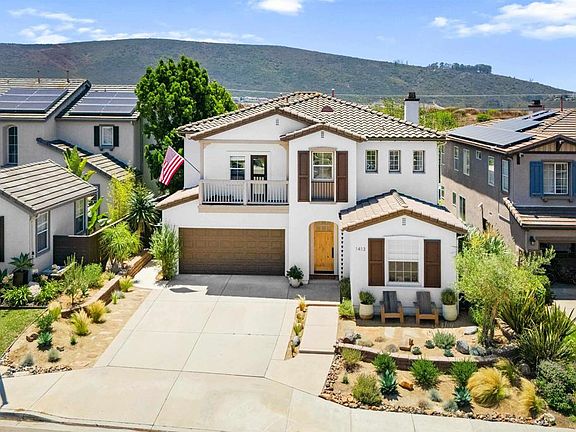 This fully renovated gem offers a stunning display of sleek modernity and timeless style, perfectly situated in the sought-after Sagewood neighborhood in the heart of San Elijo Hills. With a full home renovation professionally designed by Morgan Mullen in 2022, this residence has been transformed boasting high quality and contemporary finishes throughout. Highlights include owned solar system, state-of-the-art café appliances, custom closet converted to wine cellar, entry level bedroom with full bathroom, 3 car tandem garage, spacious backyard with the privacy of no neighbors behind you, and the list goes on! No details over-looked! Enjoy the benefits of RWI Water Systems' advanced reverse osmosis drinking water in the kitchen installed in 2025, plus a newer installed HVAC system and ductwork done in 2024. The custom kitchen is truly a chef's paradise, boasting state-of-the-art appliances, a walk-in pantry, and thoughtfully crafted details that make cooking and entertaining a joy. Savor the abundance of a thriving herb garden alongside an impressive collection of fruit trees, including apple, kumquat, avocado, fig, lemon, apricot, and cherry. Embrace leisure and fun in the beautifully re-landscaped backyard, offering artificial turf, a personal putting green, a covered patio with built-in BBQ space, and a cozy fire pit, all nestled against the privacy of serene open space and hiking trails. Zoned for popular San Elijo Elementary, San Elijo Middle, and San Marcos High School. Located in the desirable "lower area" of San Elijo Hills with easy access to the town center, shopping, trails, and parks, capturing the essence of living in the picturesque community.