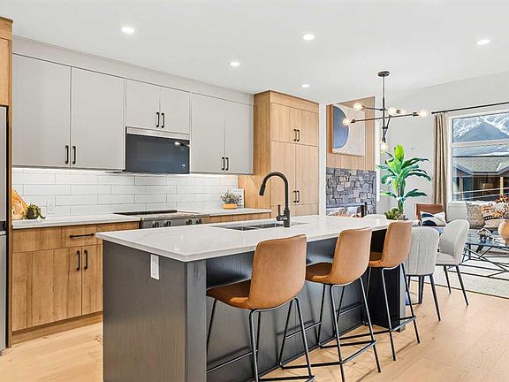 Unit 105 – The Point on Mountain Avenue Welcome to a home designed for mountain living—sun-filled, stylish, and built for real life in the Rockies. This beautifully crafted 3-bedroom, 4-bathroom residence offers over 2,300 sq. ft. of inspired living space, framed by west-facing views of the Rundle Range that glow at sunset and brighten every room. An open, vaulted living area sets the tone with a striking Rundle-stone fireplace, perfect for cozy evenings after a day on the trails. The spacious kitchen invites gathering and connection, complete with generous prep space and a dedicated coffee/wine bar to elevate mornings and unwind at night. Thoughtful touches are everywhere: a large single garage for gear and adventure-ready storage, a huge laundry room, and Built Green Certification for year-round comfort and efficiency. The versatile lower level expands how you live—ideal as a family hangout, private guest room, or work-from-home retreat—complete with a wet bar and separate entrance for true flexibility. With residential zoning and the lowest price per square foot of any new construction in Canmore, this home delivers unbeatable value in a quiet, sought-after neighbourhood just minutes from trails, cafés, and the charm of downtown. Spacious, modern, and mountain-ready—Unit 105 is where lifestyle meets smart investment. List price includes GST.