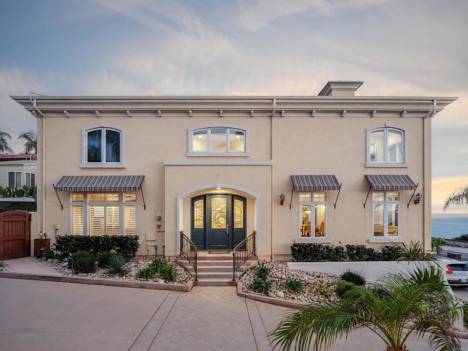 Situated on the rarely available, front-row ocean view street of San Elijo located in the coastal community, Cardiff by the Sea. Experience unobstructed ocean views from your living, dining, kitchen, primary suite, and secondary room in this updated Mediterranean villa. Featuring an updated Chef's kitchen equipped with top-of-the-line appliances, wood floors throughout, a marble staircase, multiple lounging areas, four bedrooms, AC, fully owned solar, flex space that is currently being used as a gym, three car garage, and several additional spaces for guests. The outdoor entertaining area features a kitchen, lounging area with a large wall mounted screen TV, firepit, and jacuzzi. Ideally located near local beaches, walking trails, restaurants, Seaside market, and Downtown Encinitas.