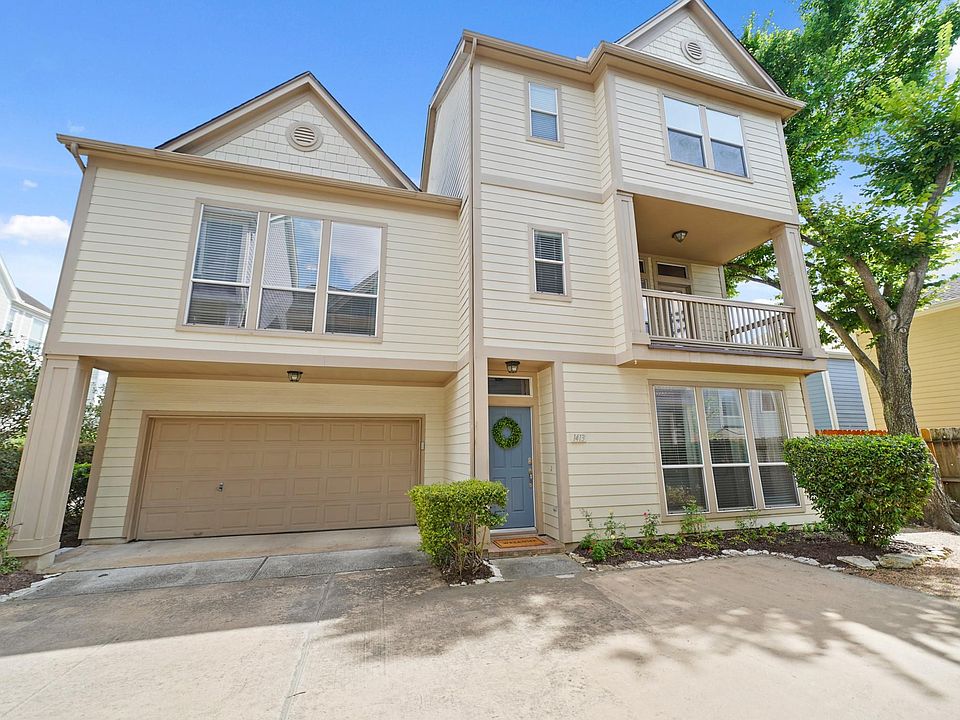 Fabulous free-standing home located in Shady Acres/Heights with first floor living and quick access to major freeways, shopping and dining. This open floor plan features a new roof, refinished hardwoods on first floor, high ceilings, crown moulding, Nest thermostats and a 220v outlet in garage. Family room has electric fireplace with herringbone tile surround, nearby half bath and opens to kitchen/dining with breakfast bar, pendant lighting, granite counters w/tile back splash, S/S appliances, gas range & refrigerator stays. Second floor has game/media room with 120" screen, projector & built-in speakers all included, access to second bath w/washer & dryer and balcony. Primary suite has space for a sitting area and luxurious bath has dual sinks, walk-in shower and oversized closet. Third floor has two bedrooms & bath. Entertain in the fenced backyard (5/24) with stamped concrete, artificial turf, string lights and grilling patio. HOA covers common grounds maintenance, water & trash.