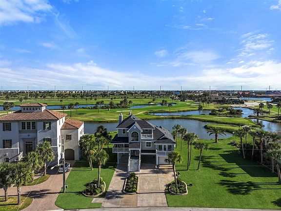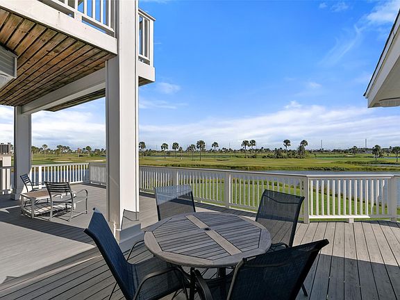 Golf course and bay views abound from this stunning completed updated 3 bdrm/3 bth home in sought after Pirates Cove. With a coveted South facing view, summer breezes will keep you cool and relaxed on the expansive back deck overlooking hole 11 of the Galveston Country Club course. Updates abound including but not limited to new high end stainless appliances, new roof 2020, led lights throughout, wired for sound, electric hurricane shutters throughout,2 newer HVAC units-4.5 tons total, Coretec LVP, Cesar stone quartz countertops, alarm system. This home is a true gem and must see. The expansive primary bedroom is located on the top floor with amazing Bay views, fully remodeled bath with bonus of personal refrigerator. Conveying with some furnishings, golf cart, 4 refrigerators total, and new washer & dryer. The fully open living and dining rooms offer plenty of entertainment space and a full wall of windows. Additional bath & Living area on ground level.