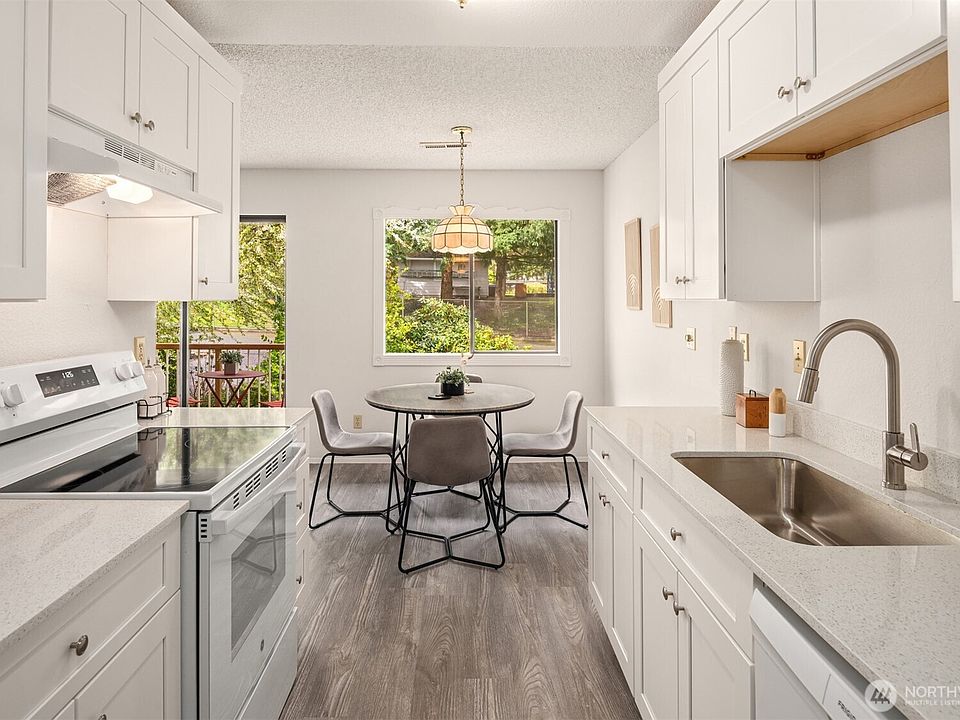 Fully remodeled and move-in ready! This spacious 2-bedroom condo features a beautifully updated kitchen with new cabinets, countertops, sink, faucet, and dishwasher. Fresh paint, new carpet in bedrooms, and new flooring throughout. Cozy living area with wood-burning fireplace opens to a private balcony. Storage is plentiful, including a large walk-in pantry that could easily double as a compact home office. Generously sized closets, a reserved parking spot, and ample visitor parking complete the package.Tucked within a quiet, well-maintained community in the highly rated LWSD, and just minutes from some of Lake Washington’s best parks and outdoor spaces. Seller offering interest rate buydown to reduce buyer’s monthly mortgage payments.
