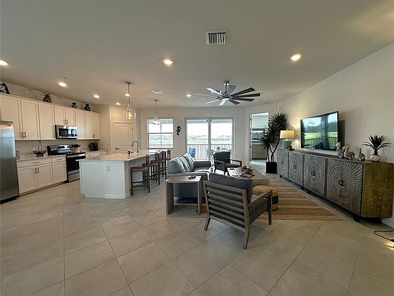 Experience the ultimate dream vacation every day in this breathtaking 3-bedroom, 2-bathroom Bay Creek Coach Home, featuring a 2-car garage, located within the prestigious Heritage Landing Golf & Country Club Punta Gorda's premier gated golf and social community! This gorgeous second-floor coach home is the largest available multi-family unit, offering a spacious and luxurious living space that's perfect for both relaxation and entertaining. As you step inside, you're greeted by an open, light-filled 2-story foyer that leads to a grand Great Room with soaring ceilings. The formal dining area seamlessly connects to an upgraded kitchen that will leave you in awe! With sleek stainless steel appliances, stunning quartz countertops, and elegant white cabinetry, the kitchen is both stylish and functional, complete with a massive island perfect for cooking, gathering, and entertaining. A sophisticated diagonal tile layout adds the perfect finishing touch. The Master Bedroom is a true retreat, featuring private access to a screened-in lanai, oversized walk-in closets, and an impressive ensuite with a luxurious oversized shower and dual vanities. With a thoughtful split bedroom floorplan, you'll enjoy maximum privacy for both you and your guests. The spacious screened lanai offers serene views of lush trees, the 18th hole, and a tranquil lake with views both front and back a peaceful sanctuary for relaxation or al fresco dining. Indulge in all the resort-style amenities that Heritage Landing has to offer, including a spectacular pool with dedicated lap lanes, a hot tub, and a state-of-the-art fitness center. Unwind at the full-service spa and saunas, or take to the courts with 6 Har-Tru tennis courts, 6 pickleball courts, and 2 bocce courts. Enjoy poolside dining at the pool cafe, offering a full bar and diverse menu. And with 4 additional satellite pools spread throughout the community, relaxation is never far away! Best of all, all of this luxury is yours with a low one-time HOA transfer fee. Conveniently located just off Burnt Store Road, you're moments away from downtown Punta Gorda, Punta Gorda Airport, Fort Myers, Cape Coral, and beyond. Don't miss out on your chance to live the vibrant lifestyle you've always dreamed of this stunning home and incredible community await you. Your paradise escape starts here!