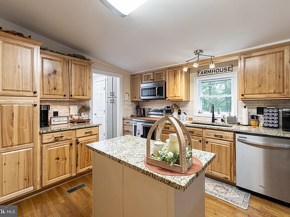 A MUST SEE! Affordable Rancher with total upgrades inside and out. Kitchen has Granite Counters & Maple Cabinets, All new SS appliances. All new LVP in hall, bath, laundry & 1BR, Prefinished HDWD floors in LR, Kit, Dining & Mstr Suite. Custom built cabinets in Laundry room, New HVAC system 2024, New Dbl hung low E windows, RV carport 18x36 with 100 amp service , 50 amp RV plug in, water & septic dump station, 2 car detached garage with water and sewer & attic storage, 20x40 Barn, 14x20 equipment lean too, Hot Water heater 2020. 4x8 walk in closet addtition added, 5x16 deck w/Trex boarding, 8x16 Front Porch w/Trex boarding and maintenance free Vinyl Railings, Well pump replaced in 2020, Generator hookup. Stone landscaping wall. All appliances convey, kitchen island doesn't convey. All on 3 beautiful acres in the Reva Area of Culpeper County. Starlink for internet.