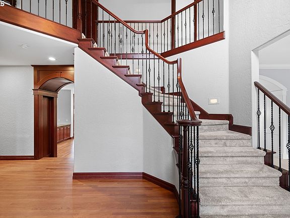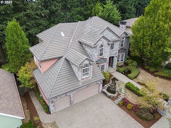 This architecturally striking home in the hills of Happy Valley offers nearly 4,800 square feet of versatile living space with craftsmanship and thoughtful updates throughout. Recently refreshed with new paint, flooring, refinished Brazilian cherry hardwoods, new appliances, deck improvements, landscaping, and more, it has been carefully prepared for its next owner. The floor plan spans multiple levels and includes four bedrooms plus an office/library, a daylight basement with wet bar area, a theater room, wine cellar, and a unique mid-level bonus/playroom. The primary suite features a dual-head walk-in shower, double sinks, and a spacious walk-in closet. Detailed woodwork, layered crown molding, custom built-ins, arched entries, and both wood and gas fireplaces add timeless character and warmth. Expansive windows and a grand back deck capture peaceful sky views, while the oversized backyard offers exceptional privacy and backs to green space. With abundant storage, multiple gathering spaces, and a balance of classic detail and modern convenience, this home provides a rare opportunity to live luxuriously in one of Happy Valley’s most desirable neighborhoods—just minutes from I-205, shopping, and dining.