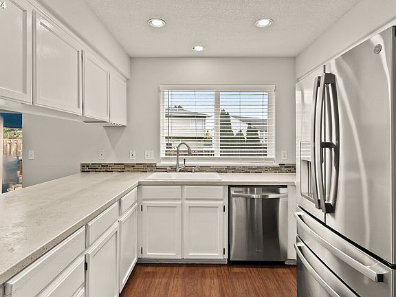 This charming Traditional home is in a quiet neighborhood just a couple blocks from Progress Ridge. Cozy living room with vaulted ceilings and gas fireplace. New luxury vinyl plank flooring throughout the main floor. Fully equipped kitchen with updates, new stainless steel appliances, eat bar, and pantry! Primary suite with walk-in closet and private bath with soaking tub and shower! New fully fenced great yard with extended patio - hot tub and gazebo included. Across the street from Northview Park. Walking distance to shopping, play, and restaurants in Progress Ridge! Great school district. Brand new carpet, a new 50 year roof with attic fans, new gutters, and a gutter cleanout for each downspout. Crawlspace sealed and redone with vapor barriers, new ducting for heating and a new sump pump.