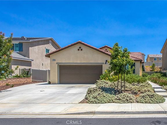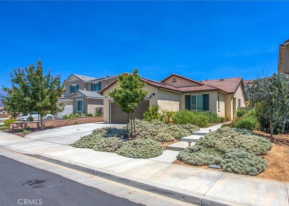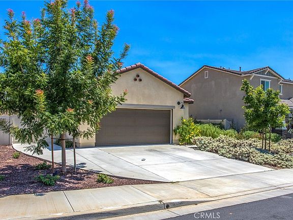 Welcome to the beautiful gated community called Olivewood You will fall in love with this Beautiful 1 story home with open concept!!! The home consist of upgraded quartz counters in kitchen and both bathrooms, upgraded flooring throughout, upgraded interior paint, plus wainscoting, large covered patio, concrete on both sides of the home, also you can park an RV side of the home, concrete stairs front of the yard leading to the front door and save on electric bill because SOLAR is PAID OFF!!!! You will LOVE the MOUNTAIN VIEWS and everything this gated community has to offer with a pool/spa, clubhouse, park, and so much more!!!