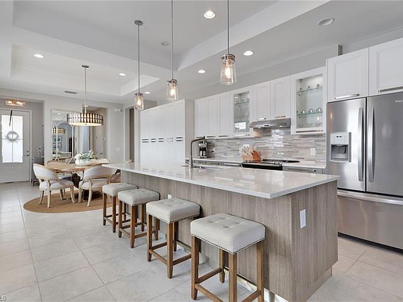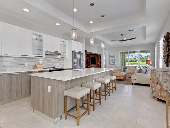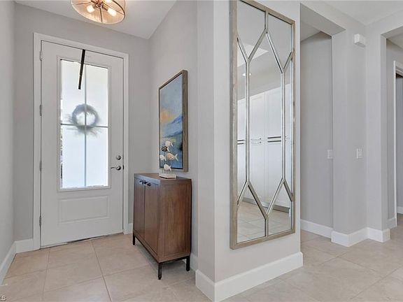 Exquisite “Seacrest” model home in the highly sought-after Naples Reserve. This 3 bedroom 2.5 bath decorator furnished residence offers serene southern lake views, a two car garage, and a screened lanai perfect for relaxing or entertaining. High tray ceilings, coastal tile flooring, and designer finishes create an elegant yet inviting atmosphere. An entertainer’s dream, the kitchen features an oversized island, premium appliances, and abundant cabinetry. The primary suite showcases peaceful lake views through lots of windows, an oversized bathroom with a custom barn door entry, dual vanities, a large walk in shower, enclosed water closet, and built-in cabinetry and a large walk in California closet. Guest bedrooms share a Jack and Jill bath with private vanities and barn door entries. Plantation shutters, LED recessed lighting, upgraded fixtures, and lush landscaping with a paver walkway to a private lakeside patio enhance daily living. Offered furnished, move-in ready and within walking distance to the Clubhouse. Resident’s enjoy Naples Reserve’s award-winning amenities, waterfront features and the quality of its luxury lakefront living experience.