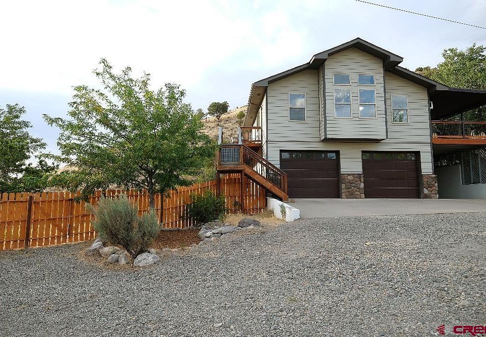 NO COVENANTS NO HOA. Spacious 3 bedroom 3 bathroom house features a bright open floor plan with an enclosed backyard. Located close to the Black Canyon of the Gunnison National Park, perfect for outdoor enthusiasts. The living room has high vaulted ceilings and views across the Montrose Valley into the Uncompahgre Plateau. Master bedroom features a 3/4 bathroom, wall AC unit and access to the front porch. The kitchen has upgraded stainless steel appliances featuring a gas stove. The hard oak cabinets smoothly transition to the new granite countertops. A separate full bathroom is available for the bonus bedroom and near the living room. The downstairs has a new kitchenette with appliances, ready to host long term guests or use as a rental. The bedroom downstairs is generous in size and accessible through the garage. With a 3/4 bathroom is the basement, this space is a standalone asset. The in-floor heating will keep you warm and comfy through the colder parts of the year throughout the whole house. Even the garage as floor heat! Each level is accessible by the split driveway, accommodating any issues with stairs. With decks on the North and South side of the house, no matter the time of day or year, there is always a place to enjoy outdoors. Shop dimensions are 30' x 40' with 10' door with wood stove and concrete floors. Perfect for any size project or storage. The enclosed backyard has pet access through the garage, making a safe haven for your furry friends.