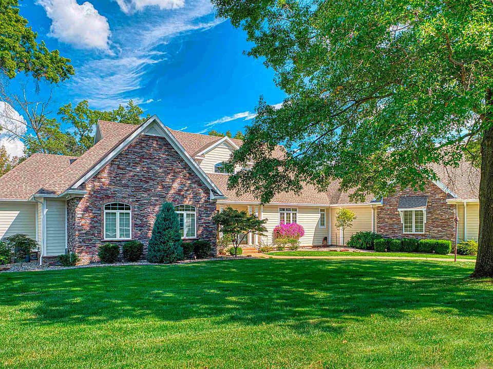 Situated on 2.58 +/- acres with a private lake in McCutchanville, this one-owner custom built home offers space, luxury, and privacy complete with 4 bedrooms, 5 full/2 half baths, and a quality finished walk-out lower level. This thoughtfully designed home offers a floor plan for relaxing and entertaining with expansive living areas on three levels. The foyer opens to a sitting area with built-ins and a great room featuring a stunning stone fireplace with custom cabinetry and a wall of windows with French doors leading to a balcony-style deck. The gourmet kitchen includes an abundance of custom cabinetry, a 6-burner gas range, double ovens, large island with prep sink, walk-in pantry, and more. The spacious dining room offers custom built-ins with window seat & shelving with doors opening to a screened porch, deck, and patio with views of the lake for outdoor entertaining. The main-level owners’ suite is a retreat, with dual ensuite baths, walk-through shower, separate vanities and commodes, jetted tub, and two large walk-in closets with custom shelving. Two additional main level bedrooms feature a Jack & Jill bath. The back entry wing with staircase to the bonus room offers a mudroom, guest bath, and a large laundry room with sink and an abundance of cabinetry and counter space. The large bonus room offers many opportunities with a full bath. The lower level adds a family room with wet bar plumbing, home office area, bedroom with walk-in closet, and a full bath. The lower level also offers an additional 876 +/- unfinished square feet including a large workshop room with pet wash station and sink, a lawn equipment garage with overhead door, and two large storage rooms. The oversized 3.5-car side-load garage and expansive drive provide ample parking. With private stocked lake, gorgeous grounds, and thoughtful design throughout, this stunning home is ready for a new family to enjoy.