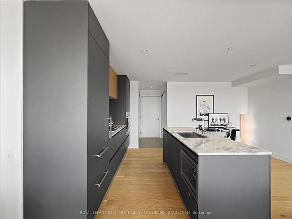 Enjoy the height of luxurious living at this boutique building in Leaside. 1414 Bayview is a testament to elevated design and functional living, centrally located in one of Toronto's most popular neighbourhoods. This two-bedroom, two-bathroom timeless home seamlessly delivers an ideal urban experience, all nestled among the tree-top canopies of Leaside. Spanning over 1,300 square feet, the suite offers high-end finishes throughout, with an elevated kitchen with premium Miele appliances and an oversized centre island complete with Caesarstone countertops. The adjoining open-concept dining room and living room are filled with natural light from a wall of west-facing windows with stunning skyline views to both the southwest and northwest. The enclosed 364 square foot elevated terrace offers space to gather with friends and family, or enjoy some tranquil moments with sweeping views. The primary suite comes with a large custom walk-in closet along with a private 4 piece spa-like ensuite with a floating double sinks, Caesarstone counters and a mosaic-tiled wall and walk-in rainfall shower. The second bedroom is equally luxurious with its own double closet with organizers, and adjacent four-piece bath. Ensuite laundry, a parking space and locker round out the many offerings in this boutique residence. Steps from the well-loved Bayview strip and the endless ravine networks, along with proximity to major transit arteries, this home is not to be missed.