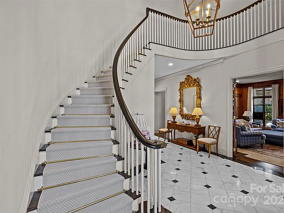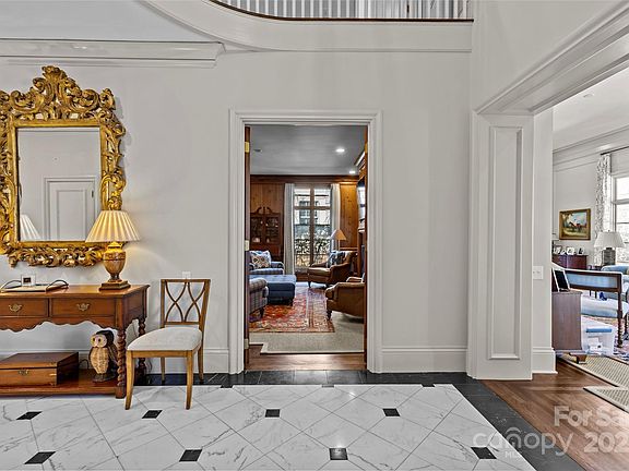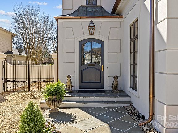 WELCOME TO EASTOVER! This spectacular home exudes luxury and sophistication. Desirable floorplan for effortless entertaining and everyday living. Grand foyer leads to the incredible living room and den, both featuring show stopping fireplaces. Custom chef’s kitchen opens up to dining room with French doors leading to the covered porch and backyard. Den features wet bar and custom pine built-ins throughout. The curved staircase leads up to the primary suite with ensuite bath, walk-in closets, a fireplace, and French doors opening up to the covered porch. Two additional bedrooms with ensuite baths and a flex space on the second level. Large partially finished rec room on the third floor. Detached garage with bonus room. Move-in ready with many updates since the home was purchased. Convenient to shops and restaurants in the Myers Park and Eastover area. Easy commute to Uptown.