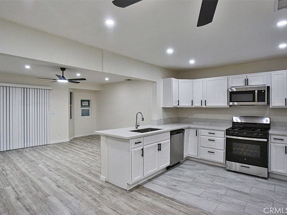 BEAUTIFUL HOME - Completely renovated and versatile property that offers two living spaces under one roof, making it perfect for a large family or for potential rental income. The main house features 4 spacious bedrooms and 2 bathrooms, while the attached ADU unit has an additional 600 SqFt and it will be permitted by the close of escrow. It includes a 1 bedroom and 1 bath with a kitchenette, providing a total of 5 bedrooms and 3 bathrooms. It come with its own separate entrance, creating privacy and flexibility for all members that will be living in the property. Step inside this beautiful home and you will find NEW tile flooring thru-out the home, NEW ceiling fans in most rooms, and generously sized bedrooms that provide comfort and functionality, NEW Kitchen with NEW appliances, NEW lighting fixtures throughout, NEW countertops in the kitchen, and freshly painted inside and out. There is plenty of outside parking space, perfect for parking of multiple vehicles. What a great opportunity for a new homeowner seeking additional living space and income potential in a desirable location! Don't miss out on this excellent investment, this property is a must-see. Close to shopping, fwys, parks and Schools. Title has it as a 3 bedroom 1 bathroom home, interested buyers and buyer's agents are advised to do their own due diligence to verify all information.