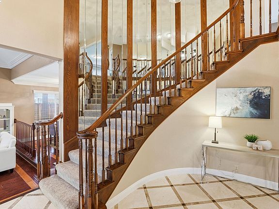 North East Facing-Exquisite 4-Bedroom Home on a Premium 0.50 Acre Lot Beautiful two-story home located in a prime neighborhood, offering 4 spacious bedrooms, 2.5 baths, and a 5-car garage with RV parking. Hardwood floors extend throughout the formal living room, formal dining room, and large family room, providing an elegant and inviting layout. The open-concept kitchen includes a generous breakfast nook, dual refrigerators, tile countertops, and ample cabinetry. The adjoining family room offers a comfortable space for everyday living and entertaining. The oversized primary suite features a private fireplace, sitting area, walk-in closets, dual vanities, a separate stall shower, and a jacuzzi tub. Additional bedrooms upstairs are generously sized and filled with natural light. The half-acre lot offers a beautifully landscaped backyard with a built-in BBQ and island—perfect for outdoor gatherings. Ideal for car enthusiasts, the property includes a rare 5-car garage plus dedicated RV parking. This home combines space, comfort, and exceptional amenities—an excellent opportunity for buyers seeking a well-maintained property on a premium lot.