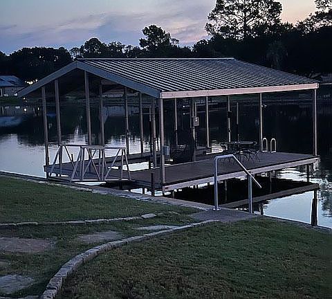 Location! Location! Location! Walk out waterfront 230 feet of water frontage. Custom boat dock, Trek flooring with Electric boat lift. 3/2/2large bedrooms on the end of cul-de-sac lot in Indian Harbor cove. Bug spray system around perimeter of house and boat dock. Overhead and under dock lighting. Wired for generator. Sprinkler system for lake access. Open floor plan. 42ft X 12 ft screened back porch. Covered front porch. Community pool. Security. Clubhouse. Playgrounds.