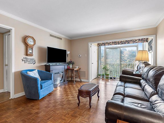 Discover the charm of this third-floor, 1 bedroom, 1 bath condo at The Continental, offering 606 square feet of stylish living space. The living room boasts elegant parquet hardwood flooring and opens to a sunroom with floor-to-ceiling window doors, providing access to a scenic balcony with serene woodland views. The open-concept layout seamlessly connects the living and dining areas, complemented by a convenient peek-a-boo window into the kitchen. The spacious primary bedroom features wall-to-wall windows for abundant natural light and breathtaking third-story views, along with hardwood floors and a ceiling fan. The bathroom sparkles with vintage character, showcasing a crystal chandelier and square mosaic tile flooring Residents enjoy an array of amenities included in the monthly maintenance fee, such as a sparkling in-ground swimming pool, sauna, social/party room, reserved covered parking, and weekday access to an on-site property manager and maintenance service. Situated on approximately 25 acres of beautifully manicured grounds, The Continental offers privacy and scenic views of Chattanooga's surrounding mountains. Experience the pride of ownership in this welcoming community—schedule your private showing today!