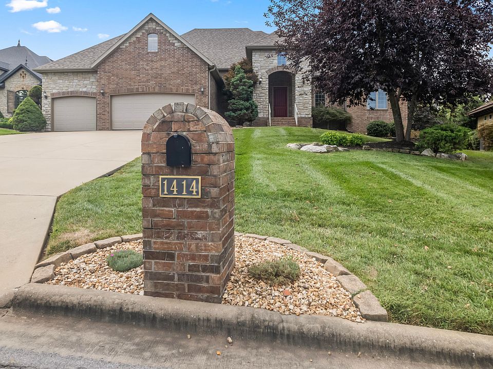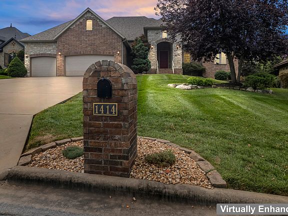 1414 Wilder Dr. Springfield, MO. Come see this beautiful well cared for, move in ready, all brick home in the great neighborhood of Eaglesgate, in South Springfield! This amazing home has so much to offer with almost 3700 square feet to love and over 3,200 of the square feet being on the primary level! The main floor of this home features a formal dining room, an office (or bedroom) large living room, plus a see through gas fireplace into the hearth room and gorgeous kitchen with custom cabinets with an island and granite counters. The kitchen also features a double oven, convection oven, warming drawer and lots of space for all of your cooking and baking needs!The primary suite is also incredible, being large enough for its own sitting area with a gas fireplace and large on suite with walk in shower, large tub and walk in closet. On the other side of the house are 2 more bedrooms plus a full bathroom. The laundry room is also on the main floor as well as another half bath. Upstairs is a large bonus room that could be another living area or a 5th bedroom or whatever you would like for it to be because it is 431 square feet of bonus space to love!Out back there is a covered patio overlooking the pretty backyard and the back is fenced in as well. Plus the whole yard front and back have a sprinkling system for watering.The home also is dual zoned for heat and a/c plus the bonus room has its own mini split unit. New roof in 2020 and new water heater in 2025! The neighborhood amenities include, clubhouse, pool, tennis court, common area maintenance and trash. The schools are Disney, Cherokee & Kickapoo. Do yourself a favor and come see this beautifully well cared for home today!