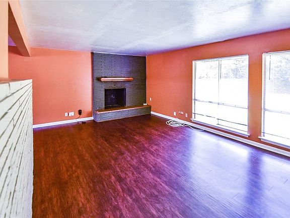 First floor features wood-grain vinyl flooring throughout. Open kitchen with granite countertops. Large living area with tons of natural light due to the many windows, also features brick fireplace. Large utility and pantry area off kitchen. Huge backyard!