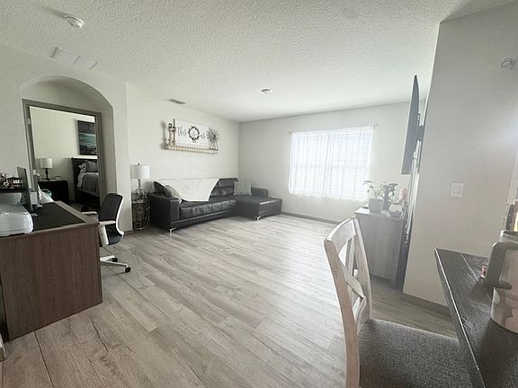 Charming 4 bedroom 2 bathroom home built in 2021. This home boasts a large open concept gathering space. Stainless steel appliances with a large walk in pantry. The master is separate from the other 3 bedrooms. Master bath has walk-in shower and walk in closet. The 3 remaining bedrooms are a great size for children and or office space. Walk out the dinning room to a screened in lanai. A spacious private fenced in back yard for children or pets to run and play. This home is equipped with smart home technology and you can set services up easily with a provider. You can enjoy the sparkling community pool all year round and enjoy a warm night stroll around the neighborhood with many ponds and wooded conservations. Nestled in a highly desirable area and close to interstate 4. You can enjoy shopping, wonderful dinning and Disney world less than 20 minutes away!