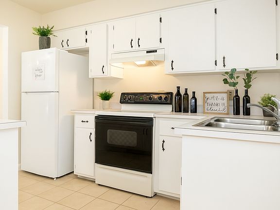 Tile flooring throughout sleek, stylish, and easy to maintain