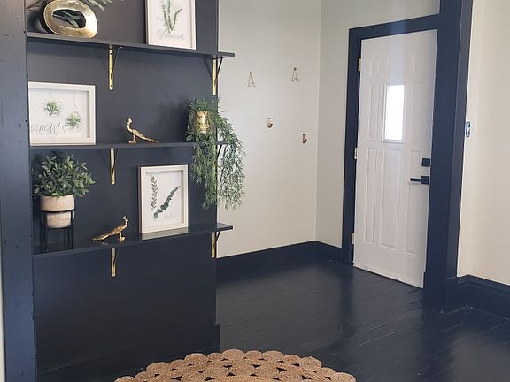 Covered front porchOff street parkingMotion sensing exterior lightingTrim workFrench doorsBlackened exposed brickUpdated bathroom