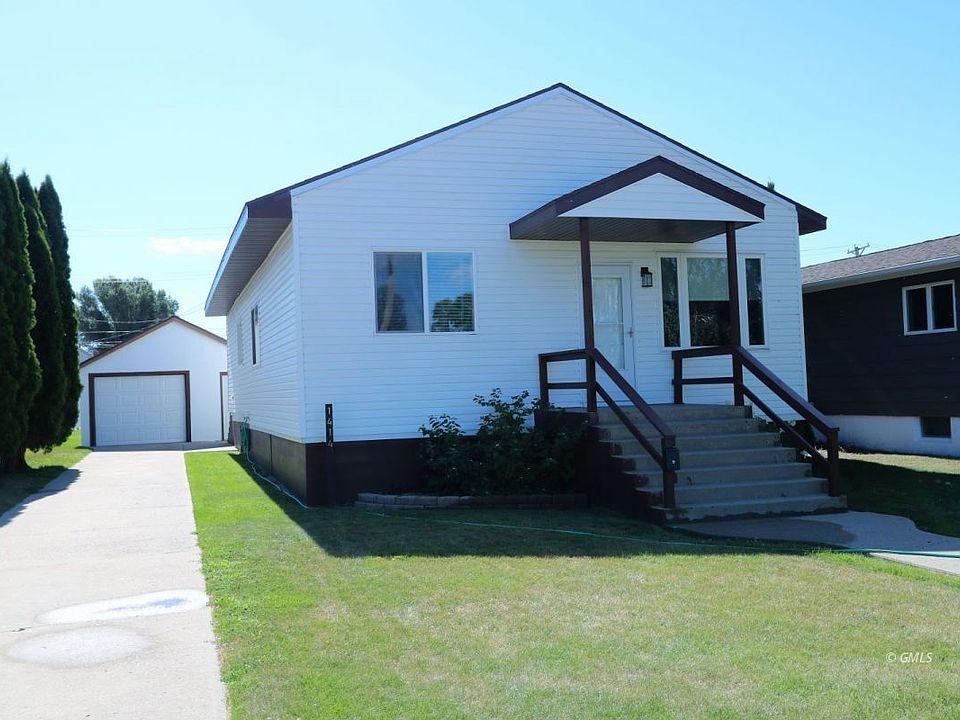 This beautiful home sits on a large lot with an oversized detached single stall garage with plenty of room to build the triple stall garage of your dreams. The spacious family room offers plenty of natural light with entry into the formal dining room. There are two bedrooms with new carpet in the guest bedroom. The large master bedroom has a walk-in closet. The kitchen is located in the heart of the home with plenty of countertop space and cabinets. There is a large pantry for extra storage. The bathroom has been completely remodeled with plenty of cabinets and counter space. The laundry area is located on the main level, as well. Descend into the basement where the seller has opened it up and prepped it for an additional bathroom, bedroom with a walk-in closet and family room. Updates include added insulation, many new windows, new roof, new insulated garage door, exterior doors and more.
