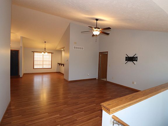 The entrance is an open floor plan with a living room, dining room and kitchen. The kitchen is dressed with numerous cabinets and a hidden pantry. On the main floor there are two spare bedrooms with a shared hallway bathroom. Also on the main floor is the master bedroom with master bath and walk in closet. The living room has access to the large deck outside and fenced in back yard. The basement houses an extra family room, 1 more bedroom, a non conforming bedroom and/or office and the 3rd bathroom. Each family room has a swivel tv mount ready for use. There are 2 storage rooms in the basement, one has shelving available for use. There is a 3rd storage area that is a storm shelter. Dogs may be allowed upon approval. No cats. Call us today for your showing.