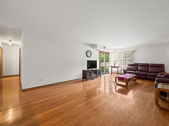 This 2 Bedroom 2 Bath end unit condo is offered for the first time by the Original Owner and nestled in Palatine's most desirable locations in Forest Edge. This well maintained home features a bright living room with beautiful hardwood floors, generous room sizes, and private patio perfect for morning coffee or evening relaxation. The galley kitchen with classic oak cabinets flows into a separate dining area, making it ideal for both everyday meals and entertaining. The primary suite offers his/hers closets and full bath, while the second bedroom and bath offer comfort and convenience for family or guests. A stand out feature is the in-unit laundry with newer stackable washer/dryer, walk-in-space, and pantry-style storage, adding both function and flexibility. Additional conveniences include a one-car garage plus an extra exterior parking space. Situated in a quiet, established community, you'll be just minutes from the Forest Preserve, shopping, dining, parks, YMCA, Golf Course and easy access to expressways and Metra. This property is being sold "As Is", offering a wonderful opportunity to make it your own in a prime Palatine location.