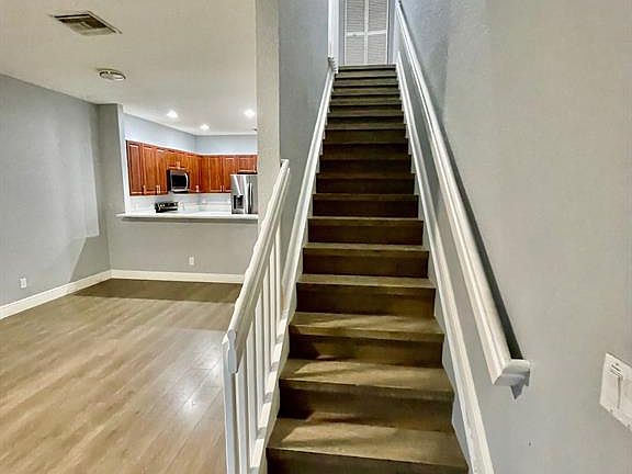Very spacious/exceptionally clean townhouse offers 3 beds/2.5 baths/1 Car Gar.- All bedrooms & full baths located upstairs. Enjoy stylish laminate flooring throughout, a modern kitchen with high-end cabinetry, granite countertops, stainless steel appliances. Additional features: Central A/C (very cold!)-Newer washer/dryer in the garage-Private, secure gated community-Tenant pays all utilities- Small Pet OK w/ $300 Pet Deposit-All applicants 18+ must have a